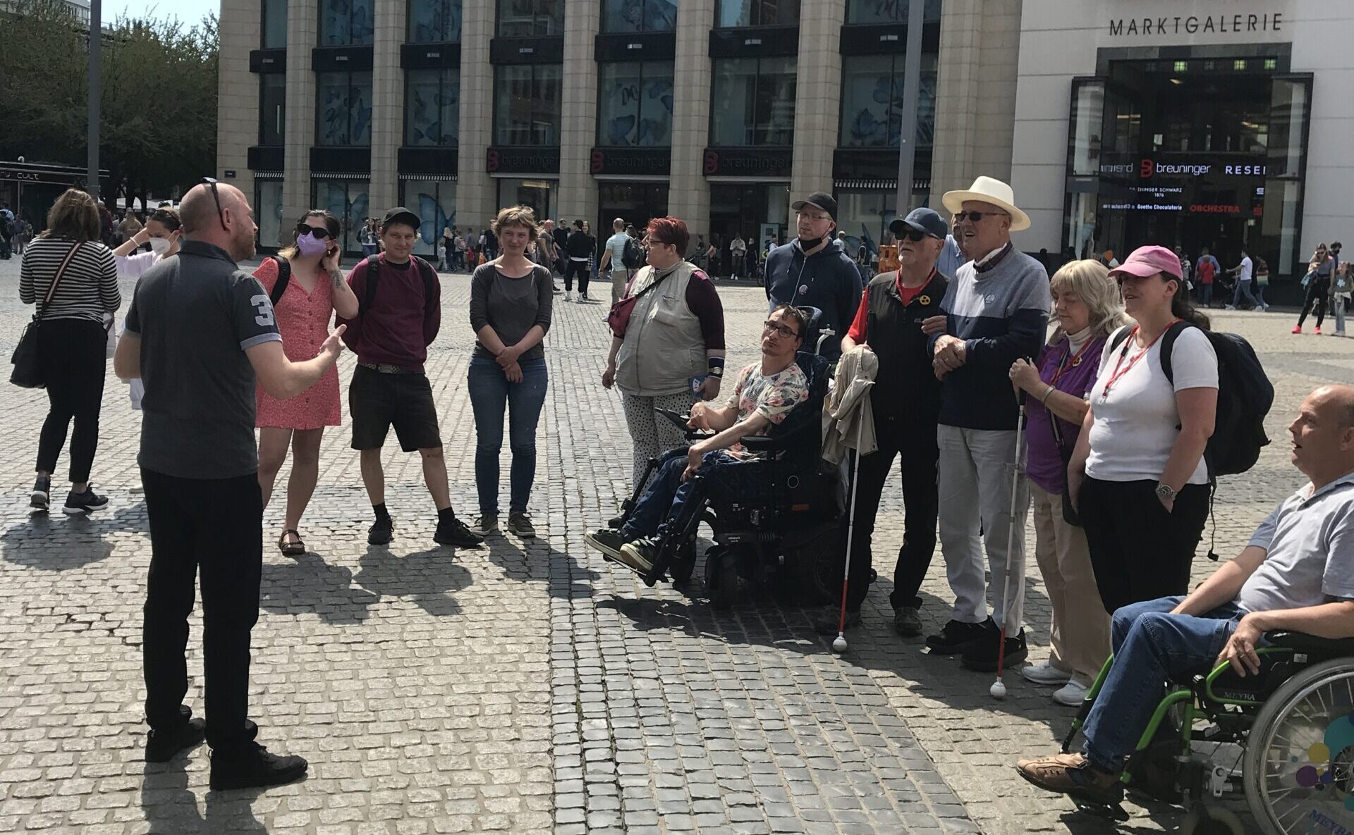 Immer häufiger werden Stadtführungen mit inklusiven Services verbunden. Dazu gehören etwa Übersetzer, Gebärdendolmetscher oder auch Audiodeskription – also Hör-Beschreibung. Letzteres soll in Leipzig noch weiter vorangebracht werden. Unter dem Motto: „Leipzig mit anderen Sinnen erleben“ bietet Christoph Häußermann Stadtführungen an, die sich speziell an blinde und sehbehinderte Menschen richten. Stadtgeschichtliche Hintergründe und Gebäudebeschreibungen ergänzt Christoph mit Ausflügen zu Orten, an denen man Leipzig auch fühlen und hören kann. Diese Führung ist auch für Personen mit Rollstuhl geeignet.