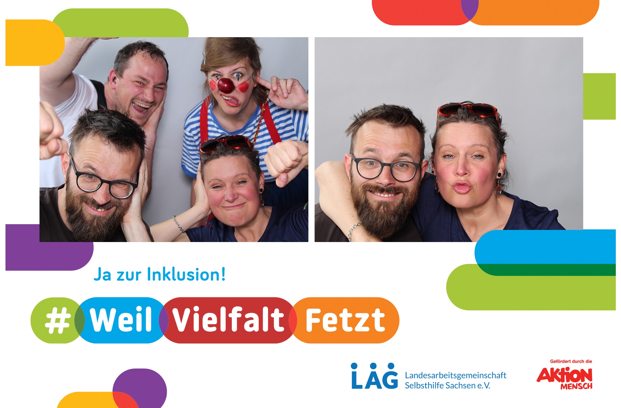 Unter dem Motto „Zeig auch du Gesicht zum Thema Inklusion“ konnten sich die Besucher*innen in der Fotobox der LAG SH Sachsen fotografieren lassen und zeigen, dass Inklusion auch wirklich mit Freude gelebt wird. Die Bilder der Foto-Kampagne finden Sie auf der Webseite der LAG SH Sachsen.
