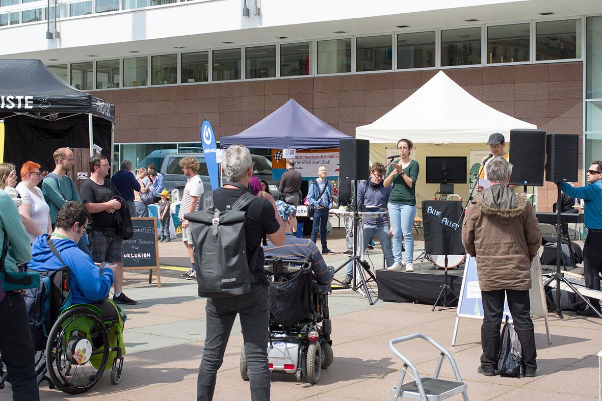 Der Protesttag stand dieses Jahr unter dem Motto „Tempo machen – barrierefrei zum Ziel“. Aus diesem Grund boten einige Partner*innen Mobilität-Parcours sowie Stadtrundgänge zur Selbsterfahrung an.