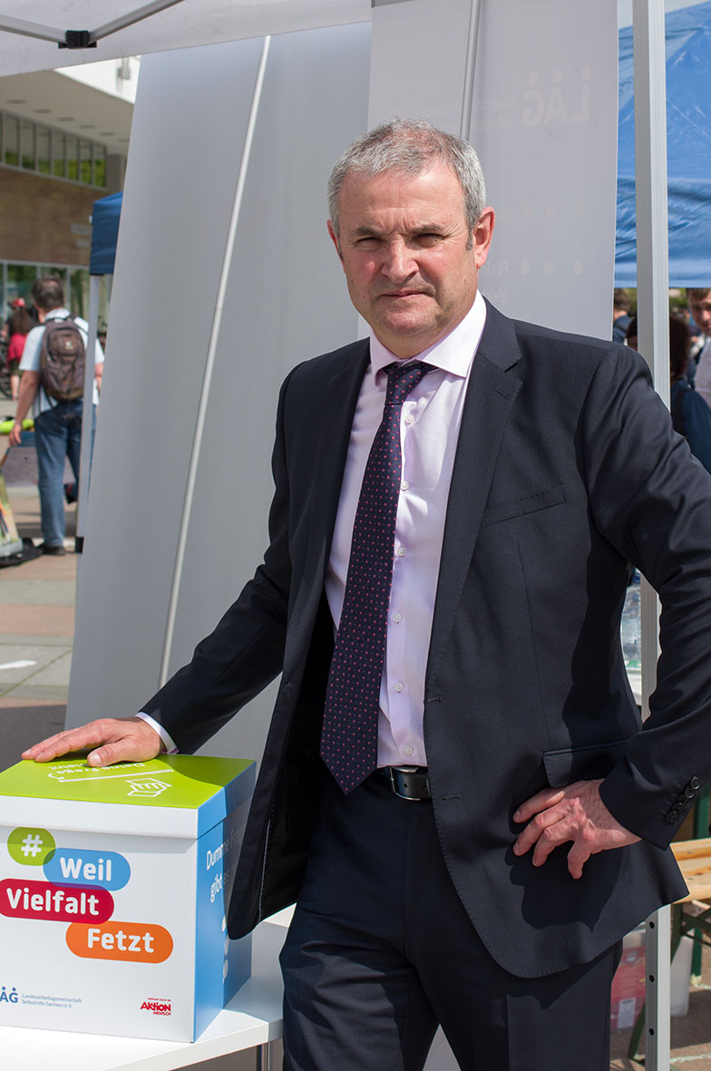 Mit der Beteiligungsbox hatten die Besucher*innen die Möglichkeit, ihre Wünsche und Bedarfe aufzuschreiben, um diese direkt an die politischen Vertreter*innen zu übermitteln. Die gefüllte Beteiligungsbox wurde am Ende der Veranstaltung an die Behindertenbeauftragte der Stadt Dresden, Frau Manuela Scharf, übergeben. Auch Michael Welsch, der Inklusionsbeauftragte des Freistaates Sachsen, zeigte hieran reges Interesse.