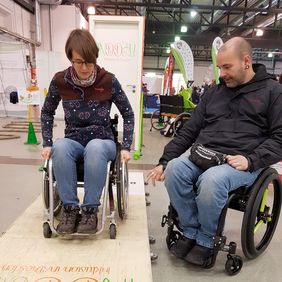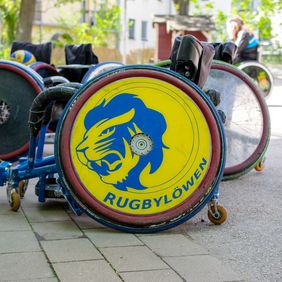 Alles andere Equipment steht bei mir zu Hause, im Wohnzimmer, im Flur, in der Küche überall. Niemand hätte gedacht, dass das mit dem Parcours und Rollstuhlrugby auf der Messe solchen Anklang findet. Die Nachfrage durch die Schulen wurde immer größer und größer. Damit hatte keiner gerechnet. Mittlerweile ist es ein Vollzeitjob nur ohne Bezahlung. Und zu Hause dreht sich dann alles um den Verein. Theoretisch könnte ich mich selbstständig machen und davon leben. Das entspricht aber nicht meiner Philosophie. Ich habe nicht das Interesse, damit Geld zu verdienen. Zum einen brauche ich es nicht, denn ich bin gut abgesichert. Zum anderen erreiche ich so noch mehr Leute. Natürlich habe ich diese Aufwandspauschale, weil ich nicht alles selbst finanzieren kann. Ansonsten mache ich alles ehrenamtlich. Und gebe auf diesem Wege der Gesellschaft etwas zurück und auch den anderen Betroffenen. Ich investiere neben der vielen Zeit auch viel Geld in den Verein. Dieses Thema kommt auch immer mal wieder auf, wenn man auf Veranstaltungen ist. Ich lebe und arbeite für den Verein und investiere auch mein privates Geld ohne Bezahlung für irgendwas anderes.