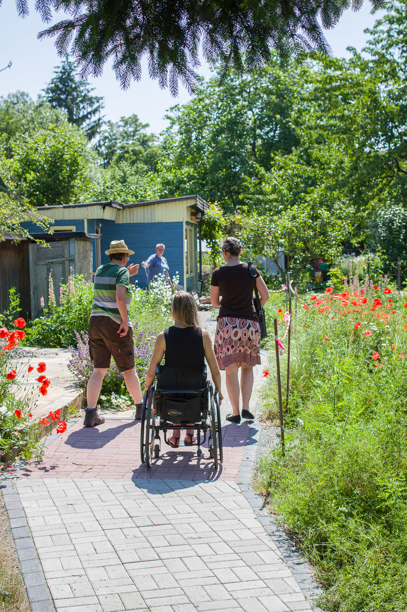 Sabine: Deswegen haben wir damals gesagt, wir machen uns auf den Weg und versuchen ALLE in den Garten einzuladen. Später haben wir mitbekommen, dass es Kooperationspartner gibt, die kleinere Gärten bzw. Grundstücke haben und auch inklusiv unterwegs sind. Dann kommt das Thema Barrierearmheit irgendwann automatisch. Es wäre schon gut, mit diesen Kooperationspartnern in den Austausch zu kommen
