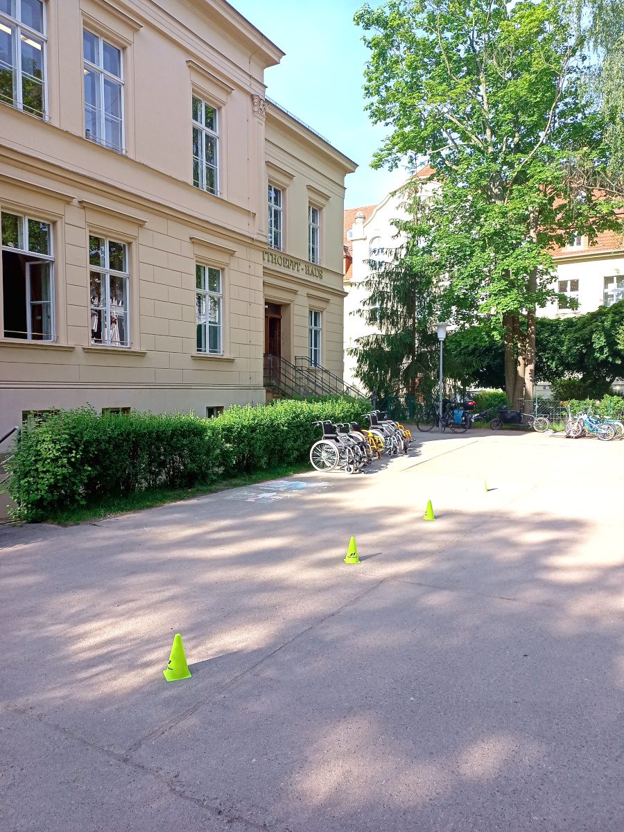 ![[Translate to Leichte Sprache:] Schulhof Heise Schule Görlitz [Translate to Leichte Sprache:] Der Schulhof der Heise Schule in Görlitz. Auf ndem Schulhof ist ein Rollstuhlparcour mit gelben Kegeln abgesteckt. Vor dem Schulgebäude steht eine Hecke, vor der 4 leere Rollstühle stehen](/fileadmin/_processed_/b/9/csm_IMG_20230601_081134_Heise-Schule-Schulhof_d30fc31136.jpg)