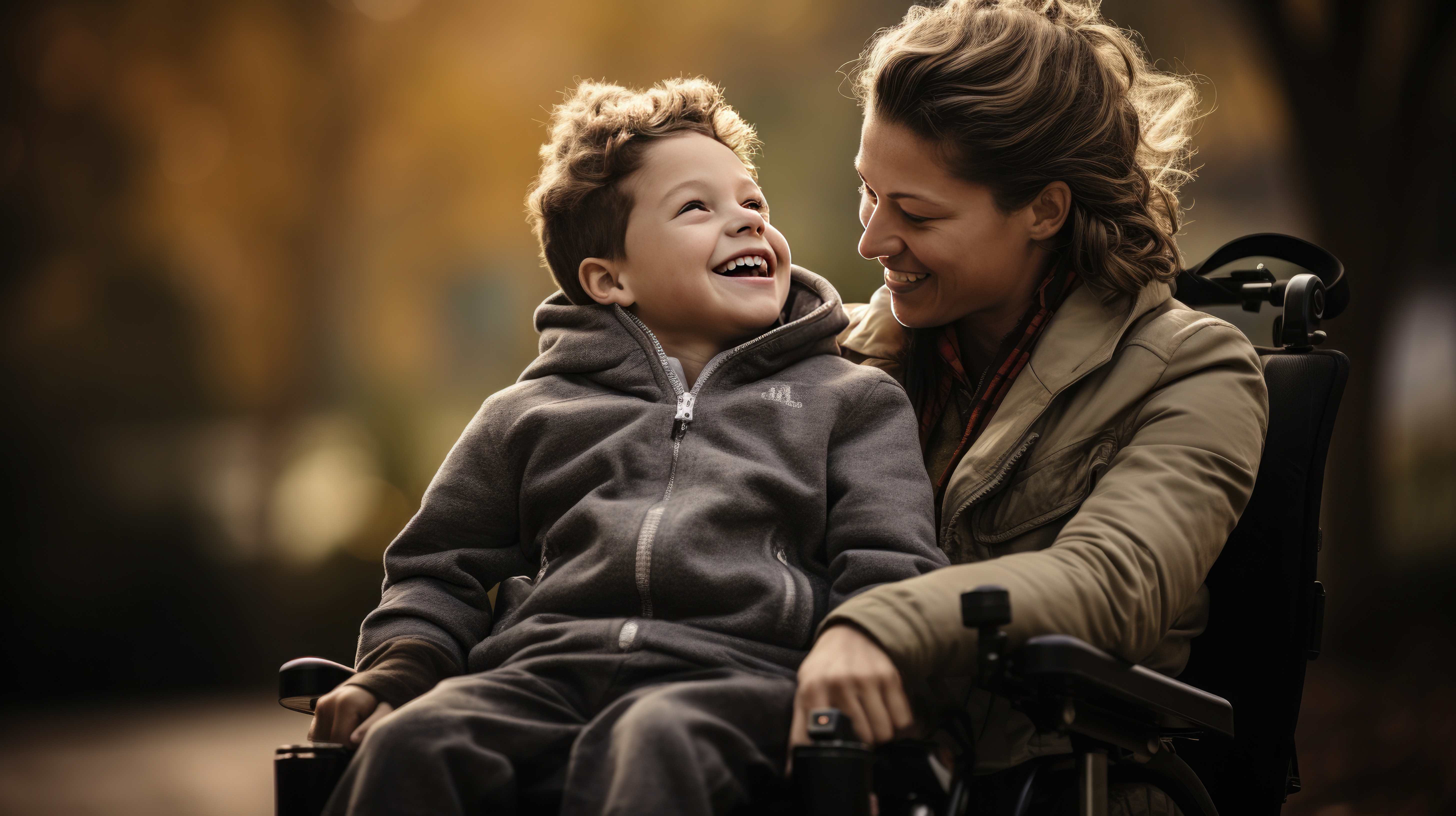 ![[Translate to Leichte Sprache:] Ein kleiner Junge sitzt auf dem Schoß seiner Mutter, die in einem Rollstuhl sitzt. Er dreht sich zu ihr um. Beide lachen sich an.](/fileadmin/_processed_/a/8/csm_AdobeStock_635124133_6042d58b87.jpeg)