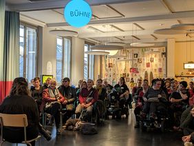 [Translate to Leichte Sprache:] Eröffnungsveranstaltung im Grassi Museum - Marsha Richarz liest aus dem Buch "Weil Vielfalt fetzt"
